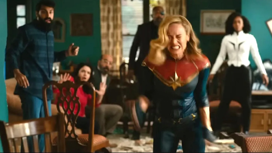From the moment she prods at a jump point in space that shouldn’t be there, she’s wildly switching locations. Wildly, but not randomly. Because she’s trading places in space with Carol Danvers aka Captain Marvel (Brie Larson) and Kamala Khan (Iman Vellani). That’s disconcerting enough. Unfortunately, Goose the Flerken swallows a couple of Kree Warriors, and relocates them to the Khans’ Jersey City home. And that’s just the first 10 minutes.