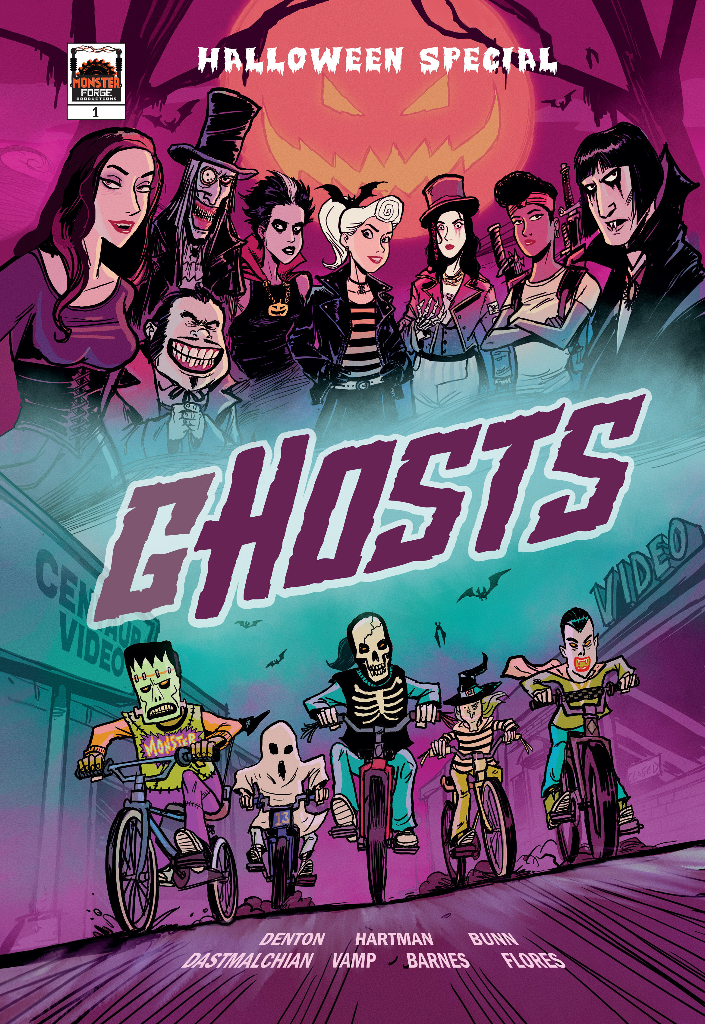 To kick things off, Monster Forge Comics is dropping the GlobalComix exclusive release, GHOSTS HALLOWEEN SPECIAL crossover series, written by Shannon Eric Denton and Cullen Bunn, with issue #1 that features Rob Zombie artist David Hartman (ARMY OF THE DEAD, PHANTASM: RAVAGER), with subsequent issues by David Dastmalchian (COUNT CROWLEY, DOCTOR FEARLESS), Eisner-nominated Rodney Barnes (NITA HAWES, KILLADELPHIA), Vamp (VAMP), Cullen Bunn (SHOCK SHOP), and Chynna Clugston Flores (MS. HALLOWEEN)!